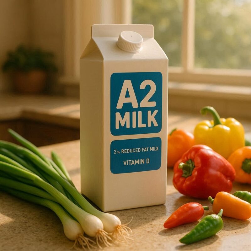 A2ミルクは、牛の遺伝子型によって「A1 βカゼイン」と「A2 βカゼイン」を分けたうち、後者のみに由来するミルクです。A1型を多く含む通常の牛乳では、一部の人にお腹の張りやガスなどの不快感を引き起こす可能性があるとされますが、A2型はこれらの症状が軽減される可能性があると報告されています。オーストラリアでは国民の10%以上がA2ミルクを選ぶというデータもあり、健康志向層に根強い人気があります。