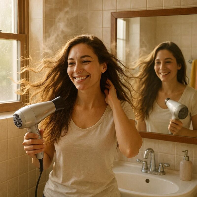 くせ毛ケアにおいて、ドライヤーの風の当て方はミルクの浸透と同じくらい重要です。必ず「上から下」に向かって風を当て、髪のキューティクルを整えるように乾かしてください。