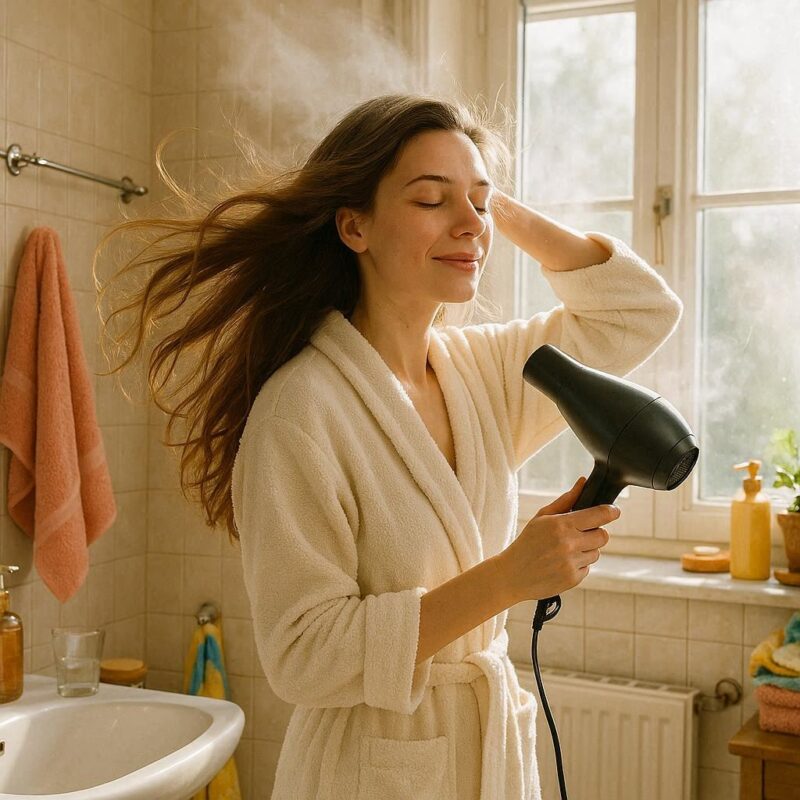 この状態でドライヤーの温風を当てると、熱によって成分が定着しやすくなり、仕上がりが驚くほどサラサラになります。もし乾かした後につけてしまうと、表面が重たくなってしまったり、内部まで浸透しきれなかったりするので、ちょっと勿体ないかなと思います。