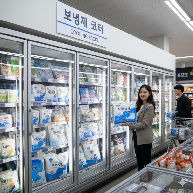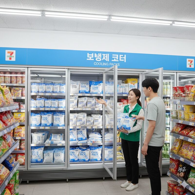 韓国では、GS25・CU・emart24・セブンイレブンといった主要コンビニチェーンが24時間営業しており、都市部だけでなく地方観光地でも広く展開しています。これらの店舗では、小型保冷剤や使い捨てアイスパックが「아이스팩(アイスペッ)」という名前で販売されているケースがあります。