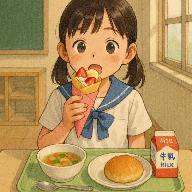 給食クレープの評価は、味+思い出の合算で決まることが多いです