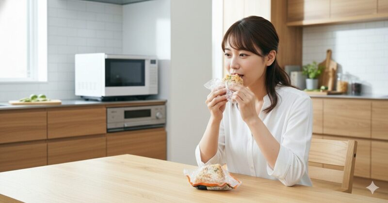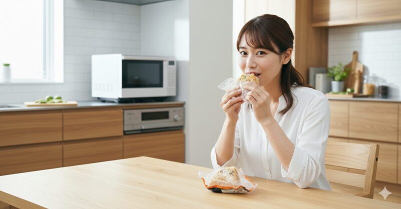 だから、安全でおいしく食べたいなら、電子レンジなどでしっかり加熱するのがベスト。市販の冷凍おにぎりも多くは「ラップに包んだままレンジ加熱」指定だし、できればそちらに従うのが安心だよ。