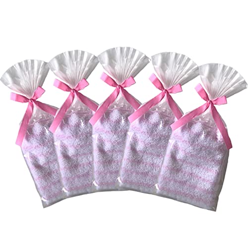 1000円ポッキリ プチギフト ハンカチタオル 5個セット 紙リボン付きラッピング袋入りタオルハンカチ 個包装[タオルマーサ] (ボーダー柄/ピンク)